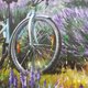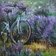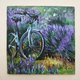 原创压克力画自行车和薰衣草田印象派 15 x 15 厘米