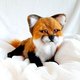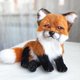 A soft fox toy in a realistic style, looking for a home and loving owners. The fox is made of artificial fur. There is a skeleton inside the body and paws. The ears are reinforced with wire . Nose, claws and pads on the paws made of polymer clay.