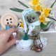 泰迪熊名叫Potap,身高15厘米。手臂、腿和头都用开口销固定。内部填充锯末。附赠枕头和手电筒。