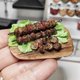 On the Board, lettuce leaves, three skewers and individual pieces of shish kebab. Surely you will appreciate the juicy kebab. This is 100% handmade. In this regard, a complete repetition is not possible. The size may differ slightly from the stated size. It is possible to design this composition on a plate, Board, or other shape, without skewers, with the addition of tomatoes and cucumbers.