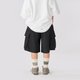 - 79%阳离子,18%人棉,3%氨纶面料,共有五个口袋,裤身风琴翻盖口袋设计、经典插袋以及背面单口袋设计,松紧腰带同时设有固定皮带功能,腰部位置设有褶皱,宽松版型,七分短裤设计