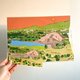 特奥蒂瓦坎的象征,在初月猩红的天空下展现出它的宏伟!这张海报描绘了月亮金字塔。