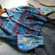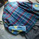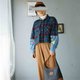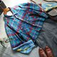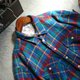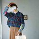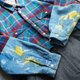 →蓝绿复古格纹拼接涂鸦牛仔袖