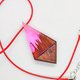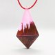 Pink Phupha Pendant The pendant is made of wood mixed with resin. The pendant size is 5.8*3*0.8 cm. Comes with a necklace made of bright red braided leather. Length 40 cm, can adjust the length The product is handmade. Can do every step so meticulous But may not be 100% perfect, the color may be distorted according to the phone screen, but each model.