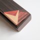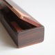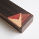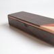 每款不同木材主体的笔盒,皆有着各异的质感、色泽及气味, 而盒面的几何图样、各式木材的色泽呼应,搭配耗时耗工的拼木技法,让此笔盒更加独特;木材温润的质感、俐落无凸起物的盒身简约设计、隐藏式纯铜轴心的盒盖开阖功能、简洁的侧边镶磁、滑顺的打开手势、盒内笔槽底部平铺柔软牛皮,让收纳爱笔这件事更温柔、安心及顺手。