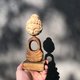 空,生,住,灭 - 松木与柚木雕刻 🌲🪵✨ 高度:22.5 厘米 (含木制底座)
