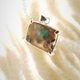 这块石是一片美丽的碧玉,含有明亮的蓝磷灰石。它就像镶嵌在白色或棕色不透明碧玉中的彩色玻璃般的磷灰石一样美丽。