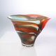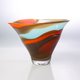 这件花器以独特而鲜艳的色彩设计呈现,形状优雅,曲线流畅。色彩的交织,橙色、棕色与蓝色的旋涡状图案,仿佛融入了大自然的元素,展现出生命的动感与活力。透明的质感让观者能够深入欣赏内部的色彩变化,增添了一层神秘感。这件作品不仅是装饰品,更是一个艺术的载体,邀请人们在视觉上探索色彩与形状的交互。它象征着自然界的无限可能性,激发了对美的追求与思考。