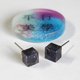 **方形树脂耳环,轻盈纤巧的质量,整体感觉为深邃的黑色,带点黑色贝壳碎片与些许蓝色亮片**