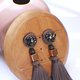 手钩流苏耳环,印度织线手钩圆圈(约2cm直经)托底,绳面钉上黑银矿石面/蓝色白色闪面珠等。