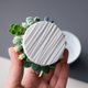 一款独特的饰品收纳盒,造型如同摆放着多肉植物盆栽。盒盖上的所有多肉植物皆为手工聚合物黏土制作,花盆则为陶瓷材质。