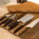 这款精致的皮革刀卷包将功能性与永恒设计完美融合,让您的刀具井井有条并受到保护。