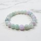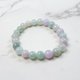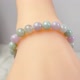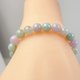 - 【名称】多彩翡翠糖果手珠手链 【尺寸】裸石尺寸约: 8.3 - 7.3 mm 【手围】手围约17.3cm 弹性线 【产地】缅甸 【颜色】白/绿/紫 【备注】天然缅甸翡翠A货 【编号】20230301-29EL
