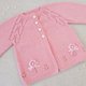 Pink cardigan, baby girl cardigan flowers, baptism sweater, christening sweater.