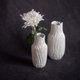 使用雾白的瓷土、每笔手工切割的纹理、最朴质的触感,简约的花器原貌,褪去多余的缤纷霓虹灯彩,静静地摆放柜子、茶几,不用言语表达,却极致衬托花与叶的姿态。