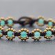 这是用黑褐色的蜡绳编织而成的手工编织手链,用玉髓和黄铜珠编织而成。关闭使用铜钟