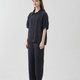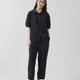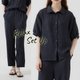 罩衫采用适度宽松的轮廓,在修饰身型的同时,散发出女性气息。而茧形裤则提供宽松舒适的穿着感,是追求活动便利性的设计。裤子为松紧带设计,并附有口袋。