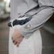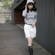 落肩宽松的衣型,搭配微露锁骨的宽领,特别适合做轻松性感的穿搭。