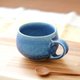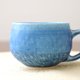 这款杯子是由让人联想到天空和大海颜色的哑光蓝釉料与具有简单粗糙纹理的白色粘土混合制成的。