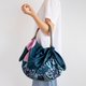 The handmade leather strap is easily attached, letting you use your furoshiki as a shoulder bag. It's just as easy to take off again, and doesn't damage the cloth in any way. The furoshiki and leather strap take up very little space when folded, making them ideal for traveling.
