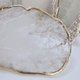北欧风天然水晶餐盘垫,每一块都是独特的形状,是原矿商品和居家时尚的结合,跟各种风格的器物都好搭配,由内而外散发着迷人气息,让人看了内心平和安静,在阳光下透着温润光,丝丝可见天然纹理,更显神秘,自然、清新沁人心脾,这也是天然石的魅力体现。尤其是金色的包边,更是画龙点睛之笔,更显贵气典雅。