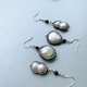✧ 淡水珍珠镶嵌水晶钻、黑玛瑙、925银耳勾(扁型水滴款)