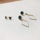 圆框内塞入皮革,搭配黄铜几何坠饰,