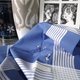 这天蓝色的全棉手帕, 织功精美, 手感柔软舒适, 沿边缀以9条纱织白条子, 喻意长长久久. 一只东方白鹳向扬长而去的好友道别. 祝福朋友幸福平安.