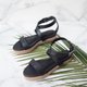 Smooth leather sandals with ankle strap. High quality material and comfortable platform.