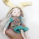 The doll is made using mixed techniques. Head, arms, legs made of polymer clay. The body is soft. The head turns, arms and legs move.