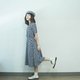 - │商品尺寸│ .Model height 156cm 肩 39cm/ 胸 52cm/ 腰(松紧腰)33-48cm/ 臀 62cm/ 裙长 103cm/ 袖长 24cm/ 所有尺寸皆平放量度,请将尺寸X 2