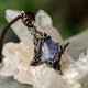 因缘际会开始接触到金属创作,从一开始的铝线摆件、后以铜线缠绕铋晶体做成坠饰、再因和朋友交流下,接触蕴含白垩纪(6500万~1亿多年前)动植物的树液化石:缅甸琥珀(琥珀中年份最久(至少8千万~1亿2千多万)、种类最多、硬度最高(莫式硬度2.5)、亦开始认识充满各式色彩与能量的水晶,并开始“铋元素SBI”的创作之旅。