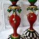 Completely handmade, candlesticks made of wood, gilding with liquid potal, the pattern is hand-painted, the decor is stained glass tape and contour paste. Coating with semi-matt varnish.