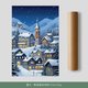 画面中央高耸的钟塔,低声守望着整个村庄,蜿蜒的小路与雪地上的细痕,仿佛指引着回家的方向。松树挺立在雪中,静谧却坚定,营造出专属于耶诞时节的梦幻与宁静。