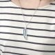 这款项链饰有小鸟羽毛图案,由经过极光处理的闪闪发光的蓝玻璃制成。