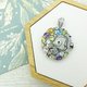 主石:拓帕石、黄水晶、橄榄石,紫水晶 重量:约10ct 尺寸:30mm 配石:淡水珠、贝壳、施华洛水晶钻 材质:925纯银镀K金