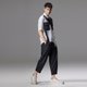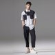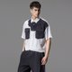 夏季提花贴布短袖衬衫 黑白撞色拼接男衬衣