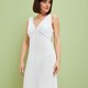 深 V 领连身睡裙是居家睡衣中最常见的款式。连身设计可单独穿着,或搭配睡袍,充分展现女性的居家品味。深 V 领连身睡裙搭配轻柔的 100% 嫘萦材质。纤细美丽的棉质蕾丝,瞬间提升女性魅力!前后皆有的深 V 蕾丝设计,营造诱人的缕空效果。胸部车缝线从下方往上延伸,创造丰满的视觉效果。高腰设计巧妙修饰身形,不显腰部曲线。