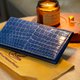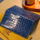 表面银包使用鳄鱼皮革,内部使用法国山羊皮料(会跟鳄鱼皮色决定内笼山羊皮色调)