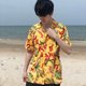 短袖衬衫,采用开放式领口设计,带来轻松的夏威夷风格。