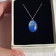 蓝色椭圆形手绘项链 ,金属部分为不锈钢,链长有两种长度可调节。 坠饰是设计师手绘完成,每个风景都是独特的,色系接近也不会重复。