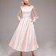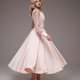 手工蕾丝粉色婚纱、短版婚纱、茶会长度婚纱