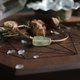 如果有留意宝石的朋友都知道天然绿色的宝石相对很少,葡萄石算是比较经济的选择。虽然不是深绿色,但它优雅清淡的嫩绿色、含水欲滴的透明度,配青铜线和金色线都非常好看!复古控必入。