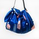 The handmade leather strap is easily attached, letting you use your furoshiki as a shoulder bag. It's just as easy to take off again, and doesn't damage the cloth in any way. This thin furoshiki and leather strap take up very little space when folded, making them ideal for traveling. This makes a great gift.