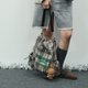 HIDDENNOTES/杂志风棉质复古红色格子抽绳双肩包斜挎流浪包电脑包