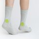 火箭方程式的核心原理是基于动量守恒原理,运用一个消耗自身质量的反方向推进系统,就可以在原有运行速度上,产生并获得加速度。“火箭推进器1:1袜”想把这个复杂的物理知识借由袜子设计呈现,透过论证动量守恒定律的牛顿摆,转化为袜面上的圆。