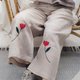 KATJI 全新版型长裤,麻质布料,具内衬里,裤头后侧松紧带设计,2 种尺寸。此次 KATJI 使用刺绣技术将图样绣于麻质裤上,漂亮好看,易穿搭,布料舒服,具内衬里不怕穿了不舒服。