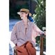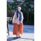 大翻领,领子扣上,是乖正的模样,解开一粒会更舒爽些。开门襟,活页式的立体门襟,一排橙色牛骨扣落在其间,分辨不出是小花的颜色还是小扣。落肩式的长袖,袖子长长以及宽宽的袖克夫,也正是她的精华之一,如此完成才是完整的尘世梦。