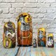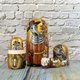 - 嵌套娃娃手绘。 装饰您的家和送给朋友的*佳礼物。 这个俄罗斯套娃是 5 件。 货架的装饰品。 由木头制成并涂漆。 最大的娃娃高 7 英寸(17.5 厘米),最小的娃娃高 1.6 英寸(4 厘米)。