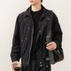 【双层格纹】都市复古立体口袋夹克/金属尼龙拼接翻领外套